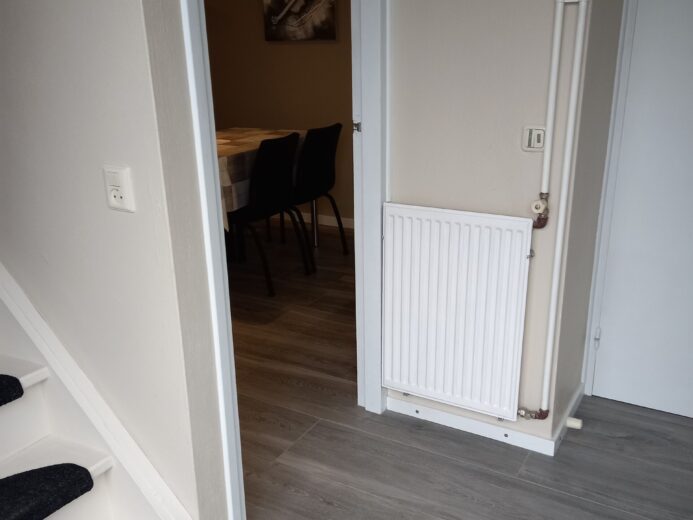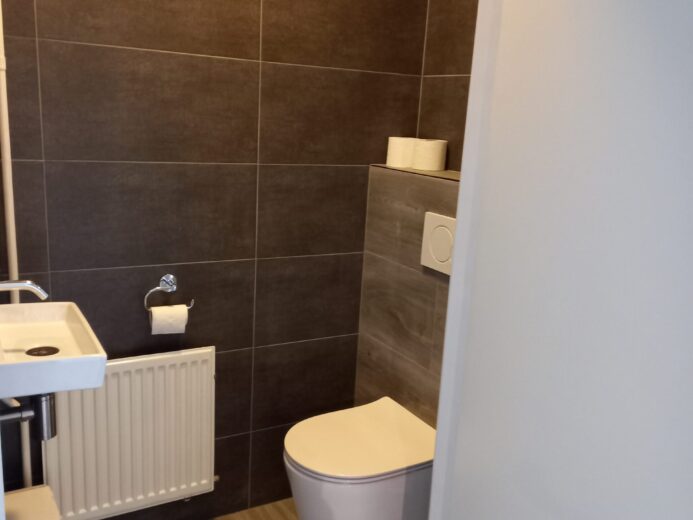 Op de 1e verdieping badkamer met douche en wastafel, 2e toilet en 2 ruime slaapkamers met elk twee 1-persoonsbedden.