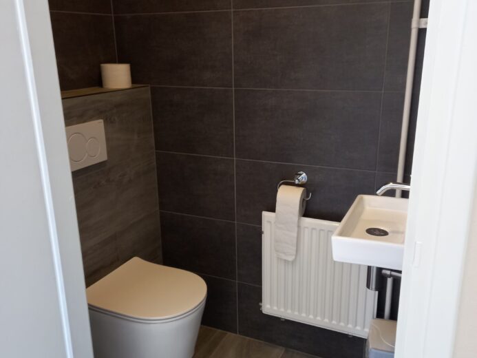 Op de 1e verdieping badkamer met douche en wastafel, 2e toilet en 2 ruime slaapkamers met elk twee 1-persoonsbedden.